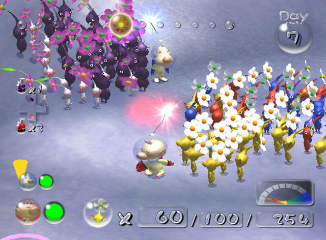 Unlike the original game, there is no time limit to accomplish your goals in, however you must complete your tasks and collect your pikmin before nightfall or else the nocturnal animals of the planet will eat them. Collecting a small army of these various colored pikmin and then using their individual advantages and drawbacks to get your way to new places (and new treasures) is at the heart of this game.