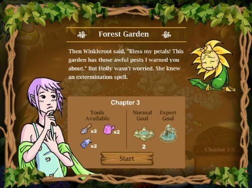The storyline is presented in the trademark cartoon style of Diner Dash, Trijinx and Egg vs. Chicken. In Plantasia, you play the role of Holly, a fairy who is sent out to fulfill someone’s wish. His wish is to have his estate gardens restored, but these gardens go on for miles, so Holly has a tough task in her hands.