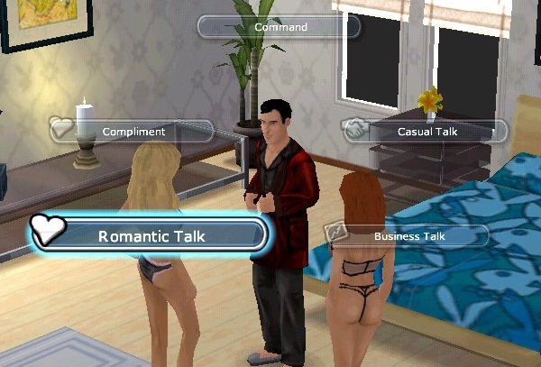 The two things that keep guests happy are Playmates and Bunnies, and what would be the mansion without these two assets? Like in the Sims, your guests all have mood bars. Paying attention to these bars will ensure your relationship with a character goes up. You can start a conversation with three different themes: romance, business or casual. Business is a formal conversation and will allow you to discuss finances, strike deals and offer contracts. Romantic conversation will lead to kissing, making out and ultimately, sex. Casual is your friendly chat, and will open up to sub-menus like share secret and joke around. Ultimately, building a solid casual relationship will let you invite people to your inner circle, which means you can give them a call and invite them over, or they can just drop by whenever.