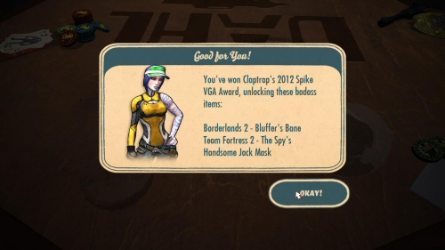 Obviously, if you’re not into poker, you may not want to pick this up. However, being able to sit and play against a colorful cast of characters makes it worthwhile. Poker will always be poker, but the humorous banter keeps it interesting and fun. Claptrap can be particularly hilarious in his remarks, but also pretty annoying when he goes on and on with Sam about dogs.