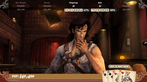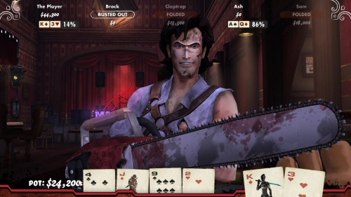 Poker Night 2 places you – the player – against four characters: Sam from Sam & Max, Ash from Evil Dead, Claptrap from Borderlands and Brock from The Venture Bros. GlaDOS from Portal becomes your artifical intelligence dealer, not only of cards, but of clever insults as well. You can enter two types of tournament, Texas Hold’Em and Omaha.