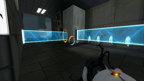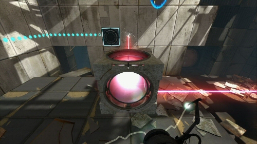 That being said, the puzzle portions of Portal 2’s nine chapters are split into clearly defined sections, where you’ll be sent through a series of tests similar to the first Portal, a lengthy and complicated set of tests run by Cave Johnson (which introduce propulsion, bouncing, and portal gels), and even further into a section dealing with large beams of lights, tons of lasers, and even rotating spirals of energy that can be used to cross large gaps.