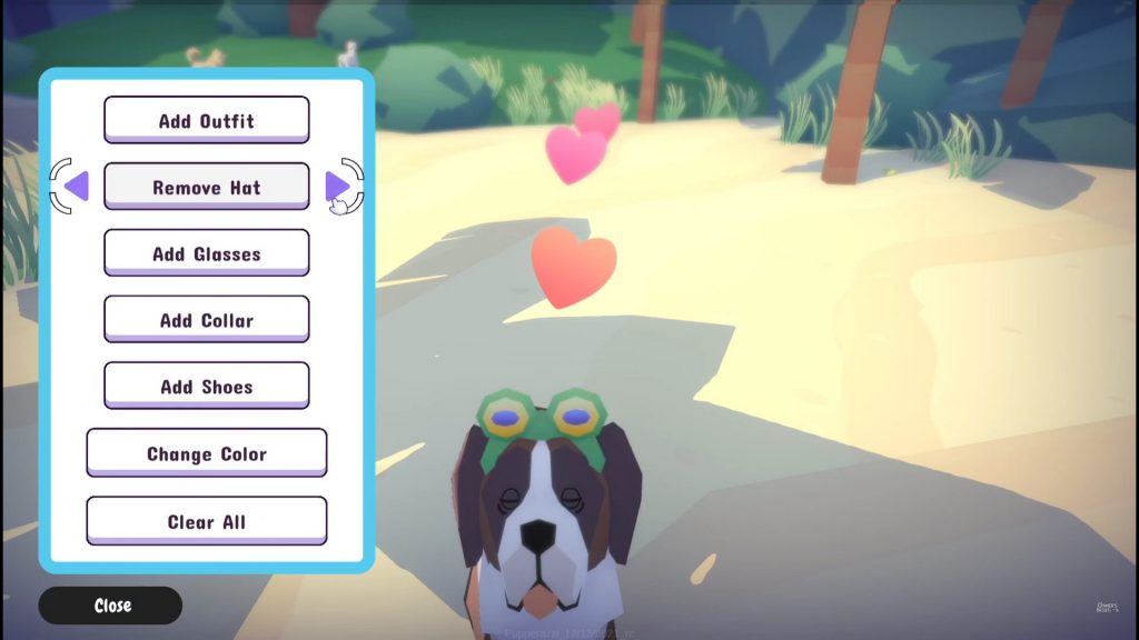 For extra completion satisfaction, the Puppypedia will collect entries for all dog breeds, some activities and fashion items. You don’t necessarily have to purchase the fashion items from the vending machines scattered through the game, since you can just take them off any dog and place them on another, assuming you spot one wearing what you need. You can also just approach a dog and dress it up with hats, glasses, shoes and other accessories, and customize colors – to a degree.