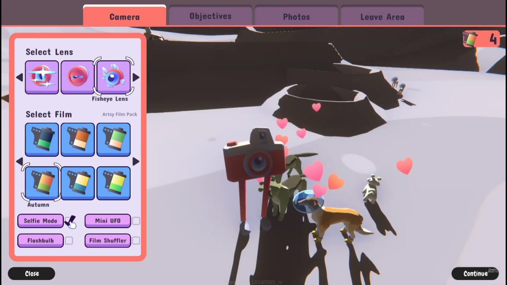 There are some features to appeal to the completist gamer. Collectible golden bones, called Bonks, are scattered throughout the game and are used to purchase camera upgrades. You can spend them in the Shop location on the world map to buy different lenses and film, and since some of them are required for specific quests, this is what you should be saving for. There are plenty of different upgrades available, such as lenses that turn your image pixelized, have a slow-motion effect, or that allow you to zoom in and out, as well as various film types with color filters for some artistic effects or black and white photography. Don’t buy random ones right away; instead, wait to be prompted to purchase some for a particular objective.