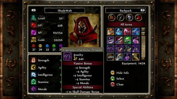 Puzzle Quest 2 lets you play as a male or female in four classes: Templar, Barbarian, Sorcerer and Assassin. Templars don’t deal much damage, but are experts in defense, as they have the highest HP of all classes and can wear plate armor. Barbarians have balanced offense and defense, higher strength and stamina, and the ability to use most two-hand weapons. Sorcerers are quite versatile, offering plenty of spell options that range from attacks to puzzle field alterations. They are the only ones who can use mana tonics. Assassins are sneaky bastards… They seem fairly weak and harmless, but then dish out a ton of damage with their sneak attacks and poisons.