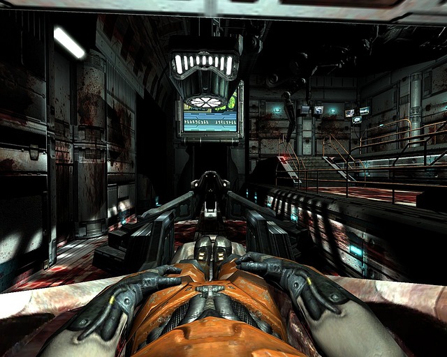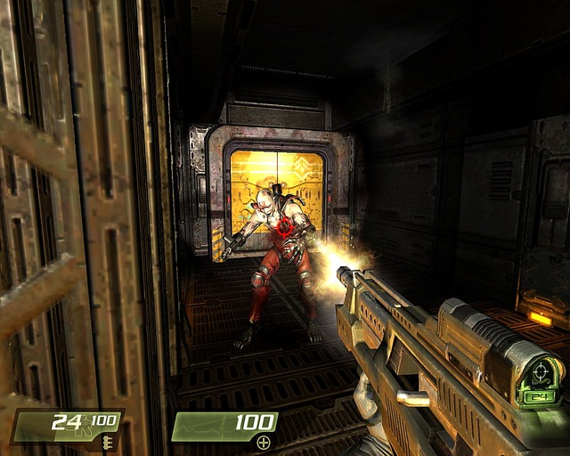 Quake IV will be composed of a series of solo missions taking place in both outdoor and indoor areas. These missons are part of a military campaign against the Strogg, and you will have a large arsenal of weapons (some of them classic Quake II weapons) and some vehicles at your disposal (including armored jeeps and a Strogg hover tank).