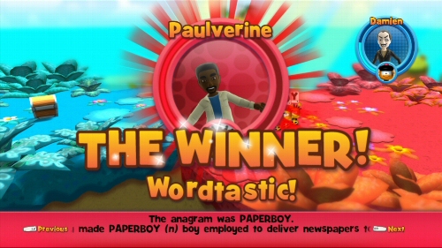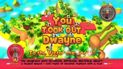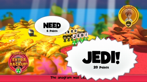 You can also earn points by being a spectator while the other players take their turns. While they fight each other, you have a chance to solve an anagram with the 8 letters presented to you, or at least find the best word you can.