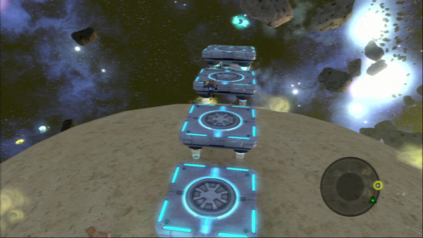 Aside from the main story, there are loads of sidequests available to tackle both on and around moons in each sector offering tons of collectibles in the form of weapon upgrades, Zoni, and gold bolts. You can hail ships and offer your assistance in fetching items or towing them to a space depot, and you can eliminate space mines or ships that may attack, in addition to landing on said moons and entering into short platforming challenges to find Zoni, or missions requiring that you eliminate a set number of enemies.