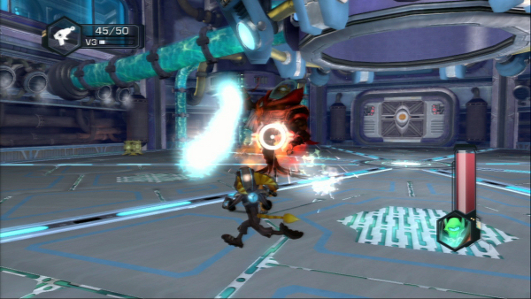 Technically speaking, the game is absolutely stunning. Even on an SD television, I was blown away by the graphics, with the only slight problem coming when using some jump pads, as lag enters the equation, but leaves just as quickly. The voice acting continues to be spot on, and the humor, which has been such an integral part of the franchise, is back again, creating truly laugh out loud moments surrounding Dr. Nefarious and his forever loyal, yet incredibly sarcastic servant Lawrence, and witty banter between Qwark and Ratchet.
