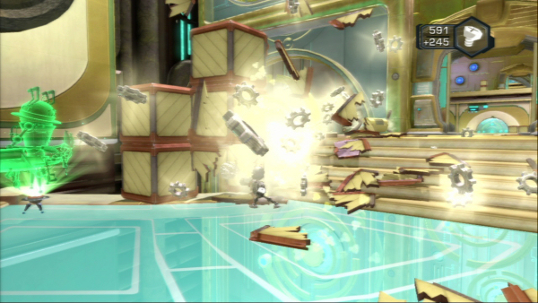 As the beginning of each new recording figuratively presses “play” on all others, you’ll frequently have multiple Clanks running around the field at once, making the timing of your actions crucial, as, for instance, you wouldn’t want one Clank to press a button to raise a platform until another Clank had been given enough time to stand on the platform in the first place.