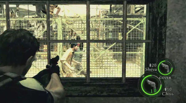 Although you have full control over Chris, Sheva can’t be controlled directly. However, she will give you a hand when you most need it, by simply pressing the B button to call for help. And if she needs help, she will call for you too – you will see an indicator flashing. So now, not only you must look out for yourself, but for your partner as well, since if Sheva dies, the game ends.