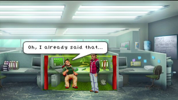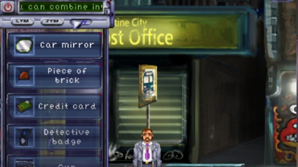 Also somewhat hidden in the inventory and memory storage is the character selection tab, which you can pull out to alternate between characters. Hovering over the interface for memory items, inventory items, and characters all in a short space can get a bit awkward at times, but what is most annoying is Ray’s cell phone, with all the bouncy icons all over the screen constantly changing positions!