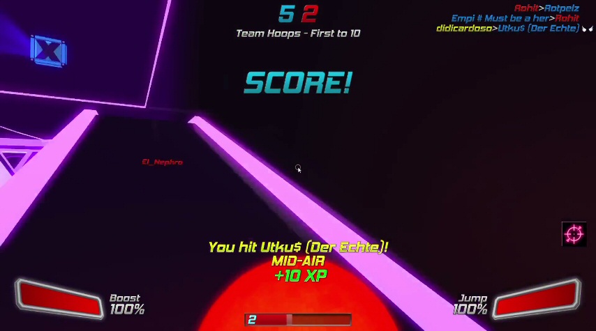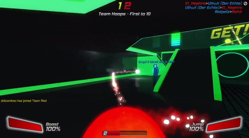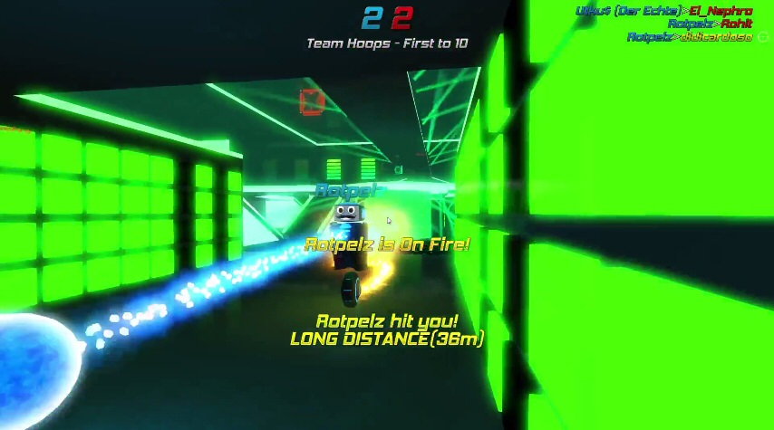 The controls are your standard WASD for movement, with E for brakes, Shift for speed boost and the Spacebar is used to jump. You pick up a ball by running into it and fire it by clicking the left mouse button, and charge your shot by holding the same button (although you will move a bit slower while charging). If you left click at the right time as a ball is being thrown at you, you can catch it, but this is easier said than done. A hit means an instant kill.