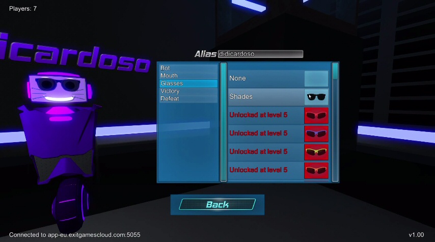 As you play and earn experience, you gain levels which unlock customization options for your robot. These are purely cosmetic to make you stand out a little bit and add a touch of silly fun to the robots’ faces: sunglasses, cat whiskers, fangs and other facial features.
