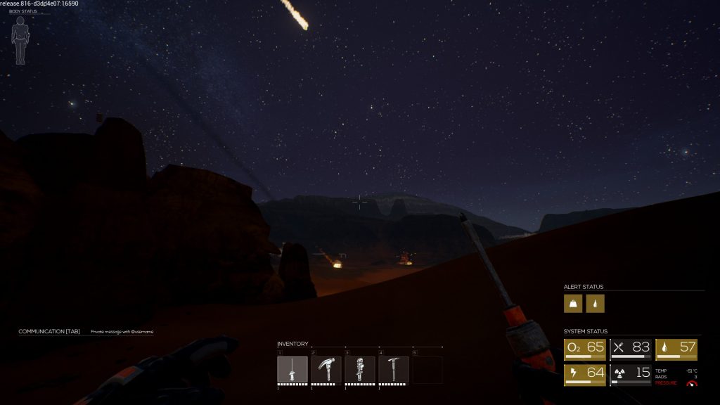 In my travels, I endured sandstorms, almost fell off really tall cliffs, nearly froze to death and dodged an insane number of meteorite showers. And as it is expected from Early Access, also endured a number of freezes, crashes, errors and server time-outs.