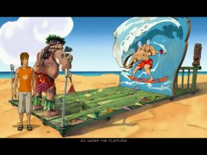 Runaway: The Dream of the Turtle begins with Brian Basco on vacation with his girlfriend Gina, in Hawaii. They decide to take a little plane trip to see the famous Tiki Fall on Mala Island, but strangely enough, all trips to the Island have been cancelled, except for one by Platypus Tours.