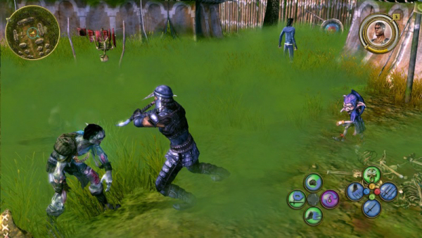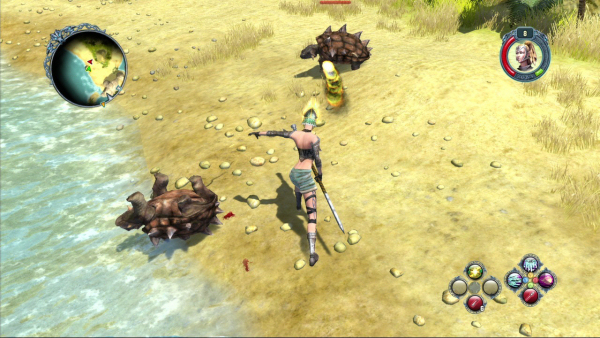 Visually, I like the colorful world of Ancaria, with its distinct areas such as bright sandy beaches and somber dark dungeons. The sound is overall pretty good too, and you get to listen to some other Blind Guardian tunes in the soundtrack (though the combat theme will get repetitive a bit too fast). The sound effects are appropriate, and the voice acting is worth noting, especially the silly bits that enemies utter when they die. There are also random bits and pieces of humor throughout, so it’s actually worth it talking to people or reading the tombstones at a grave site.
