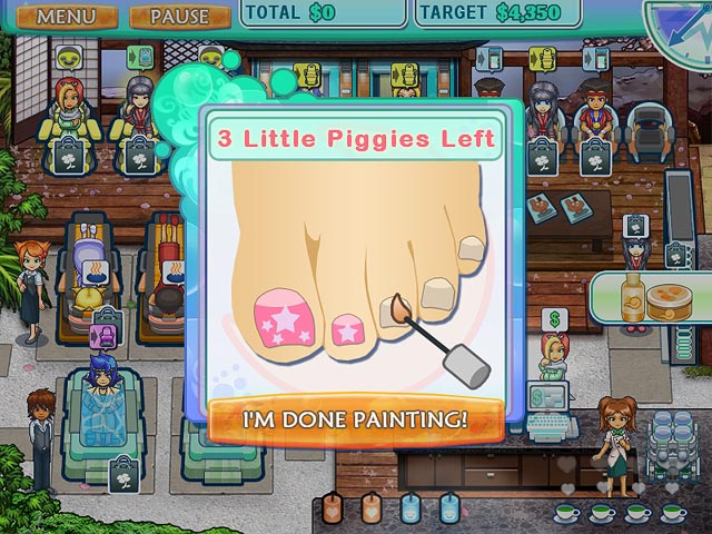 As the game progresses through each spa, you’ll be able to purchase upgrades to your spa amenities. These include more service stations, more counter space for more products, and extra spa employees to help with some of the more menial tasks (turning on the sauna, doing the massages). Also, your customers will start requesting additional services per station, adding to the growing daunting task of keeping them happy. Thankfully there are also more upgrades to keep them happy, like a tea station (as well as a tea attendant) and scented candles.