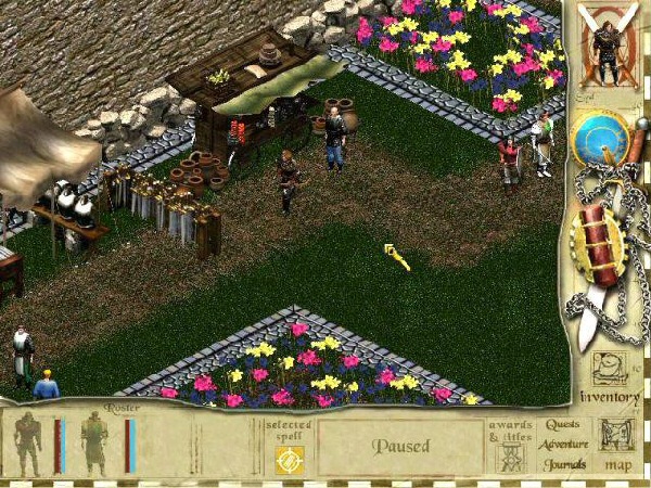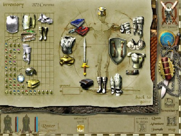 The map is uncovered by walking through the areas and is very useful. Unfortunately, it doesn’t always show the terrain fully, only the area you are currently in The inventory is easily accessible, and will show what items you carry, the amount of gold, and all equipped items. Right clicking in any of them will show the item’s info.