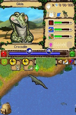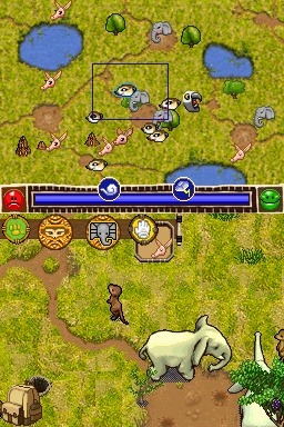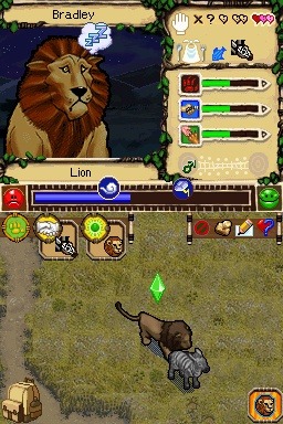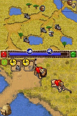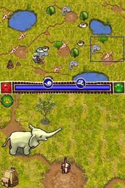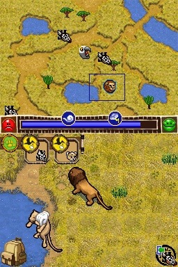 If you’ve played SimAnimals, you’ll know what to expect, as Africa is essentially said game with a new coat of paint. The game is played from a top down perspective, with the touch screen showing a very simplistic representation of each animal as it wanders around the landscape (which, itself, leaves a lot to be desired from a purely visual standpoint) performing as your expectations of each animal should. The top screen then is an overall map of your location, with small icons representing where animals, trees, and bodies of water are located.