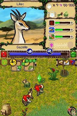 Each animal can be customized in terms of name (and eventually color), and can be moved around the playing field at will by touching and dragging them with your stylus. The same goes for the large amount of plants, berries, and other food items you’ll come across – they can be dragged wherever you so choose to customize the look of the landscape.