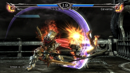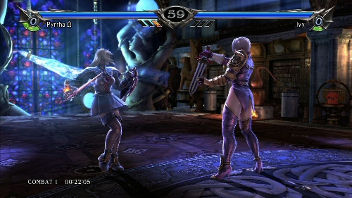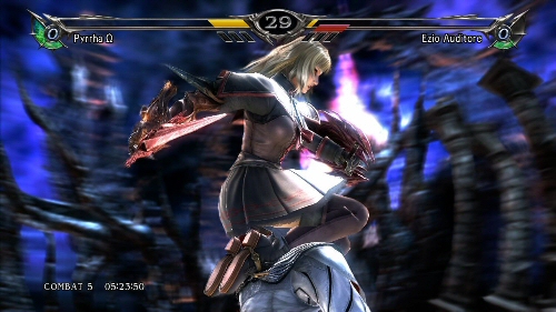 I alternated story progression with fun with the Arcade mode, where I discovered who else I could play as. Familiar faces make their appearance in the roster: Ivy, Mitsurugi, Cervantes, Tira, Yoshimitsu, Voldo (who still creeps me out), Siegfried, Maxi, Nightmare, are still their usual selves, some a bit more mature-looking. Others, such as Kilik and the Edge Master are able to fight with any style. But new characters replaced old favorites, which I can’t say I agree with, but seeing as the time frame advanced, it makes sense. Several new faces come along: Z.W.E.I., who can turn any fight into a very unfair 2-on-1; Viola who uses a crystal ball as a weapon; sword and shield users Pyrrha and Patroklos; and Elysium, an angelic manifestation of Soul Calibur itself.