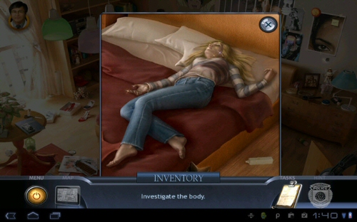 I had some technical problems trying to install and run the new Special Enquiry Detail for PC, so in the meantime, I downloaded and played the first game in the series on my phone. Special Enquiry Detail: The Hand That Feeds is a mix of hidden object and crime scene investigation. You assist detectives Brody Lamonte and Cathy Turino in solving the murder of Carmody Phelps, a teenager who was killed in her own bedroom while her parents were attending a fundraiser.