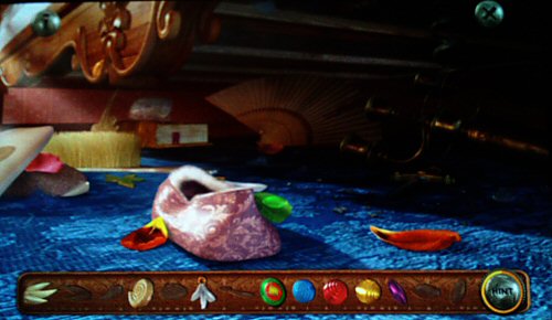 Since the game is actually more focused on the adventure and story, it’s not heavy on the hidden object scenes, and these are also played differently from what I am used to. Instead of an object list we have a bar that shows silhouettes of what we are supposed to find, making finding the items we are looking for a more challenging process.