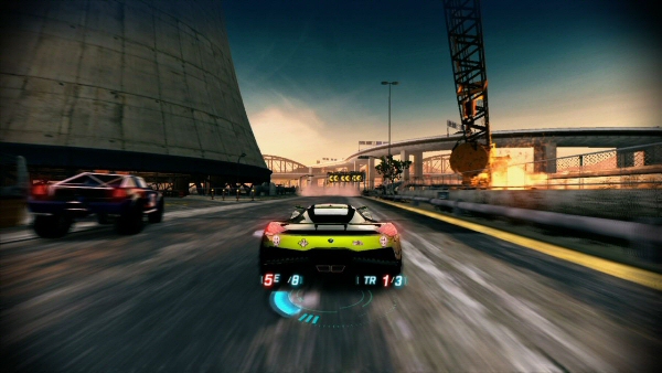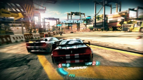 The HUD is quite unobtrusive. Being placed on the back bumper of your car, all the relevant information you need to know is right there, eliminating the need of looking at other places in the screen: you can see your place in the race, lap number, time left, power play meter, without shifting your attention.