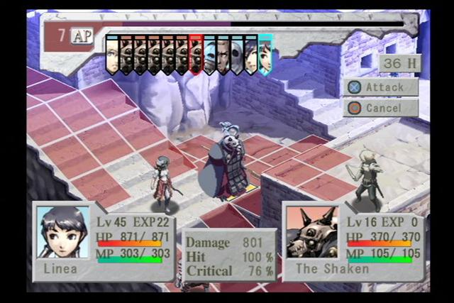 The game play is very similar to FFT with the main difference being – there are no jobs that your characters can switch between. Each person has his/her own special skills, some of which they all may have in common and something that FFT did not have is something called Team Attack. It allows your characters (those with the required skill equipped and those that are in close enough range to the enemy) to do a more powerful combo attack.