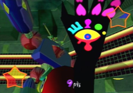 Since you have no points at the beginning of the game, you will be spending a lot of time in these EX worlds. To earn points you must use the game’s only real weapon, Linda’s scarf (which came to life after your journey to this new dimension), to literally stretch your enemies until they explode.