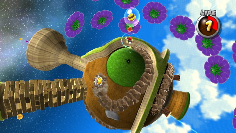 After witnessing Princess Peach being abducted from the Mushroom Kingdom by Bowser and his minions, Mario is warped into space. The game slowly begins on a tiny planet, where you get to chase bunnies (quite the task on its own!), and become familiar with the remote. I realize that this is what I’ve been waiting for since I was seven. The controls are flawless. However, running upside down and in every direction possible is a bit confusing at first, and I notice I’m bending my head as to try to see things upright. I quickly got rid of that habit though, as it gave me a sore neck.