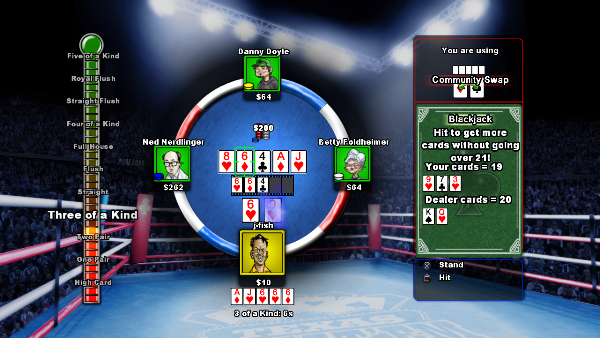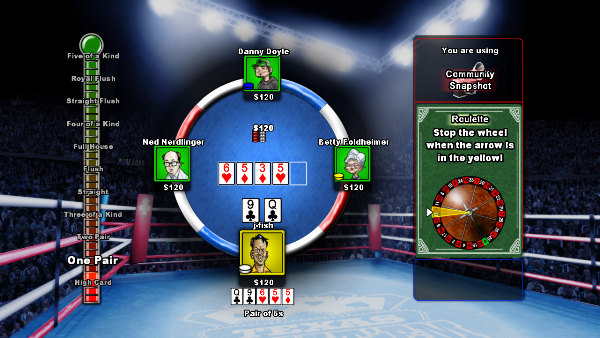 But while it may be easy to pull one over on multiple AI characters, once you start playing online, the challenge (and frenzy) of the title are kicked up a notch. Up to eight players can enter a hand at once, forcing you to constantly keep an eye on the community cards, as they can rapidly change, eliminating whatever strategy you may have set up for yourself, that is, unless you use the cheat that locks the cards values in place. The question is, can you perform your cheat before someone else performs there’s?