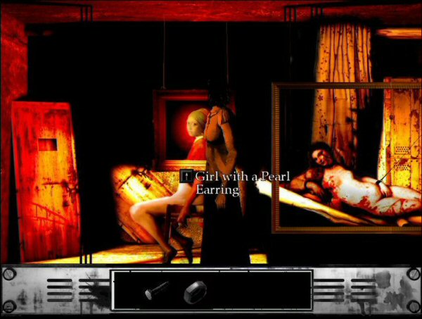 For an adventure game, it was a bit strange not using a point and click system to navigate through The Cat Lady. You move with the arrow keys, and if there is something to interact with in the scenery, an arrow will appear. Press the direction of the arrow to be presented with options. There is an inventory, but you can’t combine items in it, only use them in specific spots.