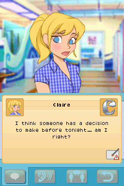 I have to say that even with all my complaints about the overall theme, the game is presented nicely. The artwork is really good, even if the 3D models fall a little short. The music is cheery and upbeat, but the tapping sound effects were a bit annoying (especially considering the double tap and triple tap mechanics). On a more technical approach, there are indicators for your “quest” progression in the form of colored circles under the girls you can do favors for, and even the movement arrows turn yellow to show you which way to go next. Still, I really didn’t like walking around talking to people only to have them criticize my outfit and basically have a bunch of these snotty little girls saying the exact same cheesy insults over and over. And why should I care if someone’s gym socks smelled? Why should I even bother telling that to other people?