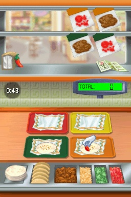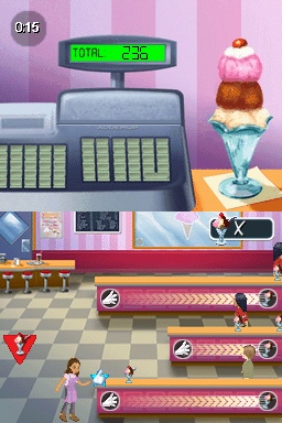 But finally, I found something that I was actually having fun with, the “jobbies”. The games are pretty simple and mostly involve hand/eye coordination. For the most part, you receive orders from your customers and have to process them as they come in. The quicker you do this, the more customers you serve and the more money you make. In the boutique you must match the piece of clothing with the color by circling around both. The trick is that the clothes are constantly scrolling by while the colors remain stationary. In the coffee shop you must pour coffees, foam up some lattes and heat up donuts or muffins, then place them on the trays and send a happy customer on his/her way. The taco game gives you four different trays in four colors. The orders appear on the top screen: a colored baggy will tell you which tray to use, and the ingredients shown must be placed in that specific order on the tray. As for the ice cream game, it’s a simple grab 10 sundaes, toss them on the counters the customers are at, but you need to keep going back to refill and get 10 more. Again, nothing overly complicated, and they are actually fun.
