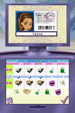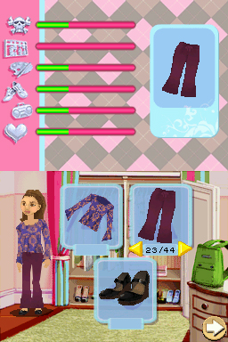 You begin by picking one of the pre-set female characters and get a crash course on popularity from your nanny, since your parents are away. As a recently transfered 7th grade student to Octavian Country Day School, your first task is to put on clothes and see how the items you wear please particular cliques. Then you’re sent off to school where you meet Claire, the “new girl” who starred in the movie… and she starts you off in the whole gossip business.