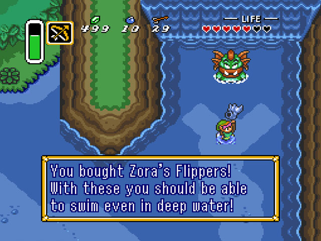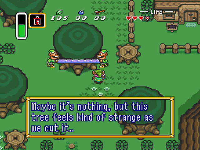 The game’s predecessors on the NES looked entirely different from one another. Shigeru Miyamoto, the lead designer of the Zelda series, created The Legend of Zelda (the first Zelda title) as a top-down adventure game, but decided to make Zelda II, one of the least popular of the Zelda titles, a side-scroller with RPG influences (incorporating experience points and other RPG elements). For A Link to the Past, though, he reverted back to the more popular top-down format and made it into an action-adventure game that has more in common with the first Zelda than the second.