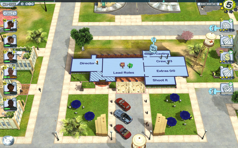 You have full control over your crew. People will line up at the different offices to become stars, crews, researchers or maintenance staff. It’s up to you to pick the most suitable for each task. Hiring someone is a click and drag process, with a twist for custom-made stars. If you have created your own with the Star Maker tool, every time someone is at the casting office waiting for a job you can drag them to the “Import Star” room and pick one of those you have created. No more Mr. Ugly in a movie, you can make everyone as gorgeous as you want, with the advantage of giving them acting experience in some categories and other useful. Make sure you explore all the options in the Star Maker, it really is a powerful tool.