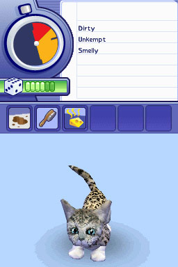 EA has definitely learned something from the faults in The Sims 2 Pets on DS. The overall look of the game, the cats and dogs models don’t look blocky, there are more detailed and realistic pet animations, and the sound effects seem more appropriate (the shower in The Sims 2 Pets didn’t sound like a shower at all). In the end, camera and stereo aside, I am pleased with the experience.