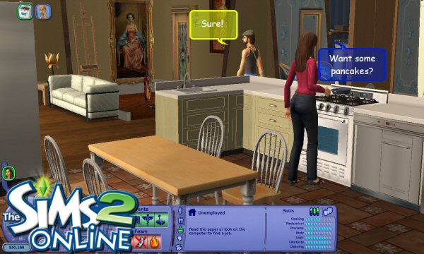 From what we know, it’s taking the basics of The Sims 2, with the exception of generations (no toddlers, children or teens), and applying The Sims Online concepts to it. The Sims 2 had enough expansions that offer plenty of options for skills and jobs, particularly with the Nightlife and Open For Business expansions. There are community lots designed specifically for skilling up and do jobs. You will find the DJ booth and instruments to play on, and if you get enough people together, they can all participate in a band. There are restaurants and bars where you can just hang out or be a barista, a bartender, a chef or a waitress. Crafting workbenches let you make flower arrangements, toys and little robots that you can then sell.