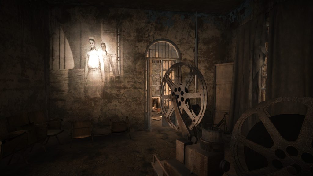 The presentation is the strongest point in The Town of Light. You have the current state of the decaying asylum, which is both beautiful and sad. When you are inside in the middle of all the dull peeling paint, rusty things and decrepit furniture, you can sometimes catch a colorful glimpse of the landscape outside, with a beautiful blue sky and treetops in Fall colors through the barred windows, painting what would have seemed like a picture of hope to any patient caged up inside.