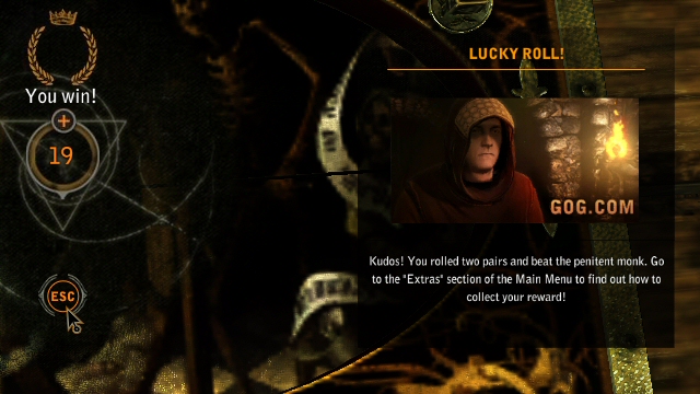 I have to admit, my new addiction is the fighting – and I don’t even care for QTEs! But it’s rewarding to see some serious ass-kicking and fantastic motion capture while Geralt violently punches and kicks whatever adversary into oblivion. Or rather, unconsciousness! And while now I don’t have to drink someone under the table to learn their darkest secrets, there is a new gambling activity in the form of arm wrestling. I’m not very fond of this one, maybe because it’s not easy to do with a trackball (less accurate and steady than the mouse). Here Geralt sits across from someone else, and you must watch the meter at the bottom and constantly pull to the right while keeping the arm icon inside the meter, which becomes progressively smaller. Once your icon reaches the right side, you win. I didn’t find it particularly fun nor interesting, and would rather go back to the drinking.