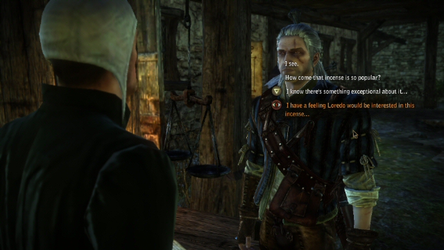 A great way to learn things is to intimidate or use Axii to persuade people to tell you the truth. These options are sometimes available in the dialog choices, which are sometimes vague and just a hint as to what Geralt will say. Unlike before, where you were able to read the entire text, now you just sort of get the gist of what may come of it, which means that your choices won’t be so clear anymore as to what’s wrong or what’s right.