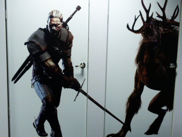 After being greeted by a fantastic life-size and extremely life-like statue of Geralt at the door, our demo began with a quick presentation to learn about Witchers and a CGI intro to the third installment of Geralt’s adventures, somewhere referred to as No Man’s Land. A bearded Geralt, looking older, tired and like he has seen too much battle lately, carries a trophy monster head hands it in for money. A group of men sentence a girl to death by hanging. They harass her and prepare the rope, as Geralt collects his reward and rides on.