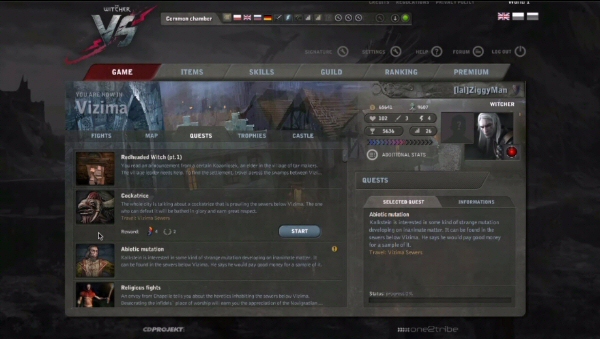 For those who aren’t familiar with the game, The Witcher: Versus is a browser-based duelling MMO based on the world of The Witcher. You can play one of three classes: sorceress, witcher and frightener. I won’t go in-depth into the basics of the game (you can read more about that http://www.gamersintuition.com/review.php?g=witcherversus), but what you need to know is that you play your duels by picking a series of skills in advance (attacks and defences), then the game will measure that against your opponent’s choices in rock-paper-scissors fashion to determine the winner. As you level and earn money, you can purchase skills and items that let you be more effective in battle.