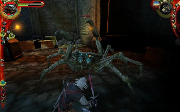 Don’t expect to be pressing a button to auto-attack or furiously click on an enemy to do damage. The game uses an interesting timed click system that reminds me of Summoner. The attacks are timed with the sword movements, so you can only begin the next attack once the previous is nearly finished. The cursor will change to tell you when to click (looks like a little flaming sword) but if you watch Geralt’s movements closely, you can tell when the time is right too.