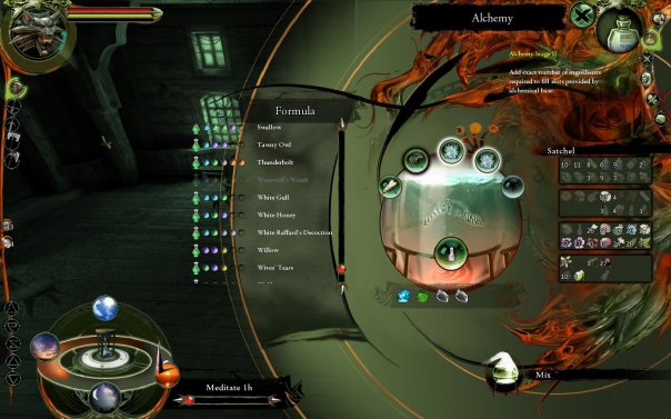 Alchemy is a really interesting and time-consuming portion of the game – or maybe I just spent way too much time fiddling with it. You can create healing potions, potions to see in the dark or to give you infrared vision, bombs and a series of blade greases to give your swords damage boosters against certain creatures.
