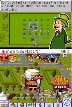 The game makes good use of the dual screens. The top screen shows your advisor and his/her tips or any ride or shop details. The touch screen shows your park and a series of menus to make your job easy: paths, rides, shops and stalls, graphs and wi-fi options. Everything is easily accessible and the process is intuitive and simple.