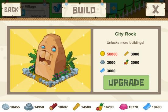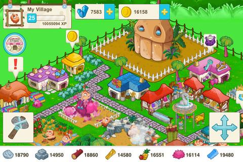 As your village grows, you gain levels and unlock new items and buildings, and will eventually be able to upgrade existing ones. You can even expand your village area by purchasing adjacent space.
